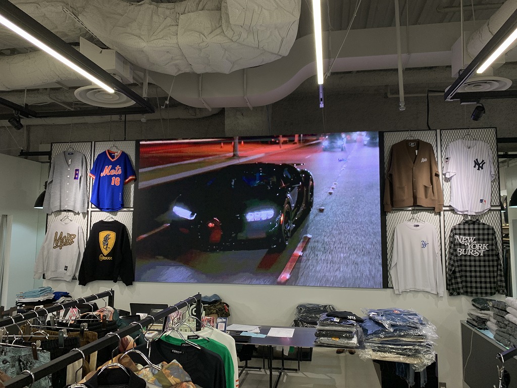 大阪市中央区心斎橋のMUSIC&FASHIONショップの工事が終了しました。 店内奥に屋内型LEDビジョン、店頭ではキューブ型の同時施工です。