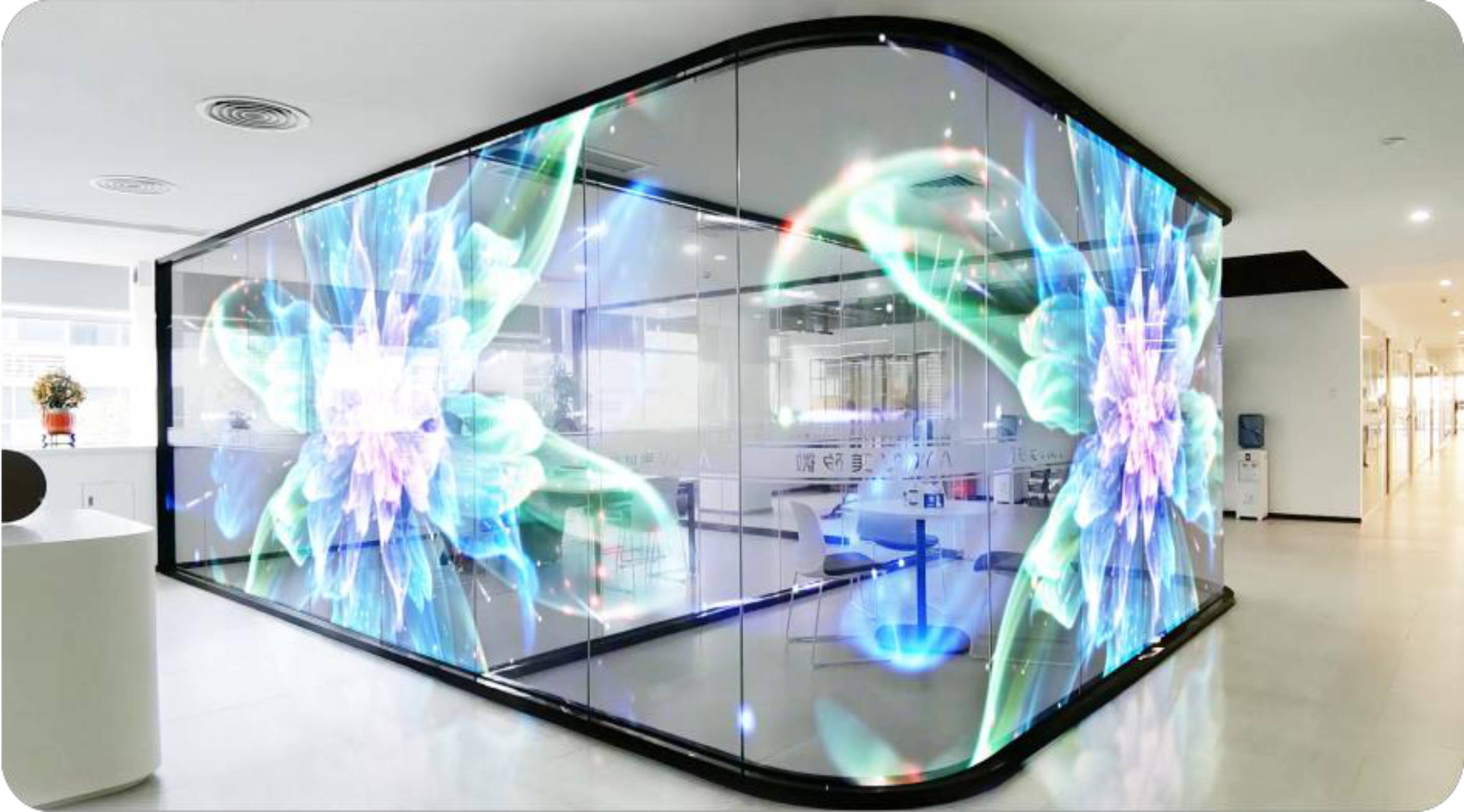 非常に透明度が高く、超クリアかつ極薄、高透明度の最高級素材使用して、美しい映像を映し出すホログラフィックLEDスクリーンです。