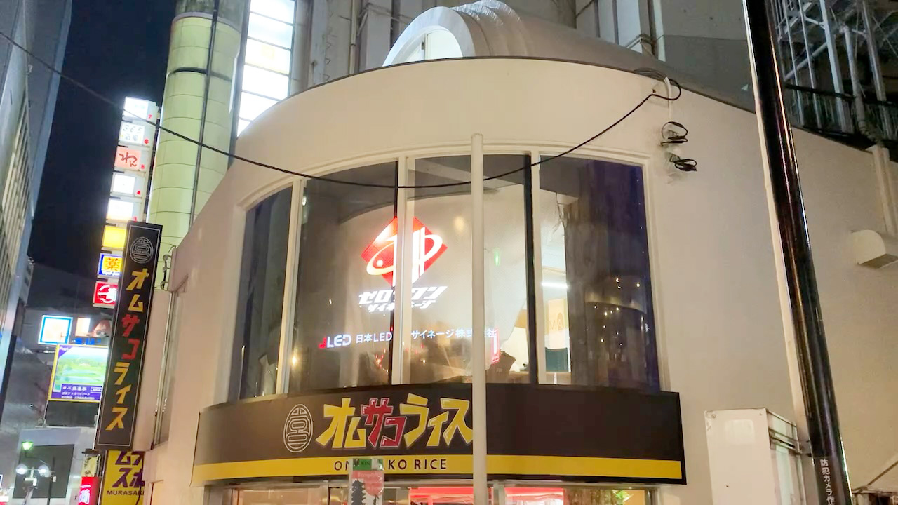 オムサコライス渋谷本店様の透過型型LEDビジョンの設置工事が終了しました。