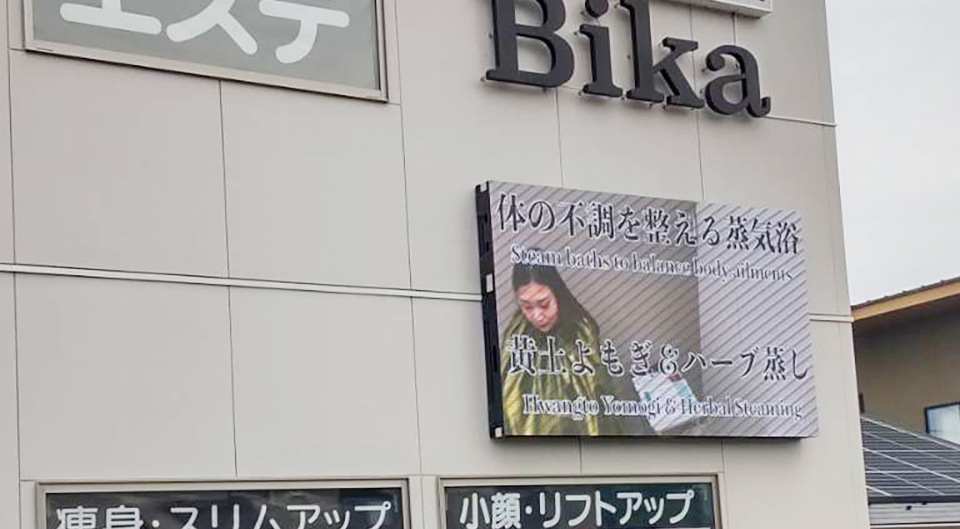 島根県のセルフトータルビューティーサロンBika様の屋外型LEDビジョンの設置工事が終了しました。