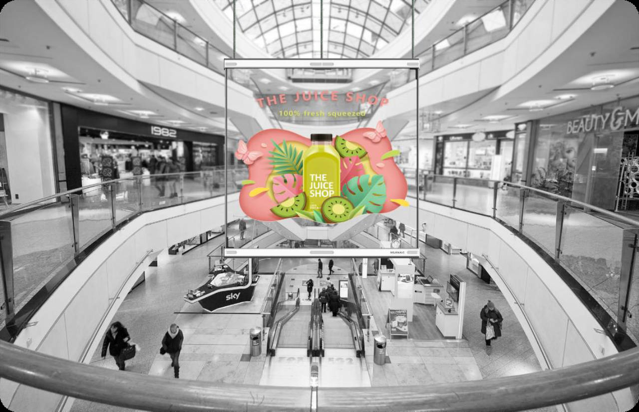 店内奥に屋内型LEDビジョン、店頭ではキューブ型の同時施工です。