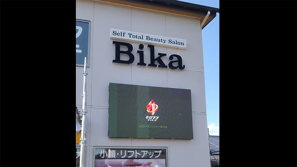 島根県のセルフトータルビューティーサロンBika様の屋外型LEDビジョンの設置工事が終了しました。