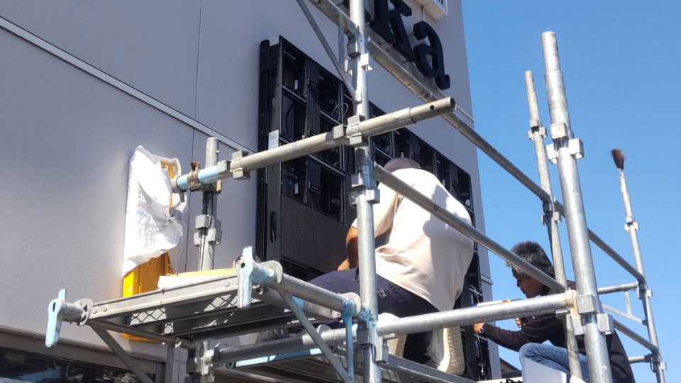 大阪市北区の屋外型LEDディスプレイの設置工事が終了しました。