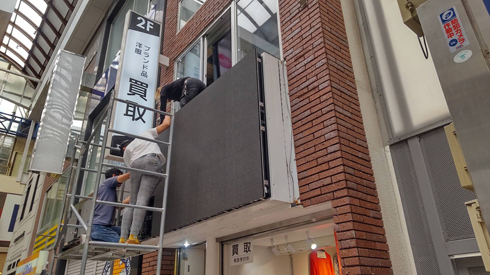 神戸市中央区三宮町の洋服・ブランド品買取&販売エコスタイル神戸三宮店様の屋外型LEDビジョンの設置工事が終了しました。